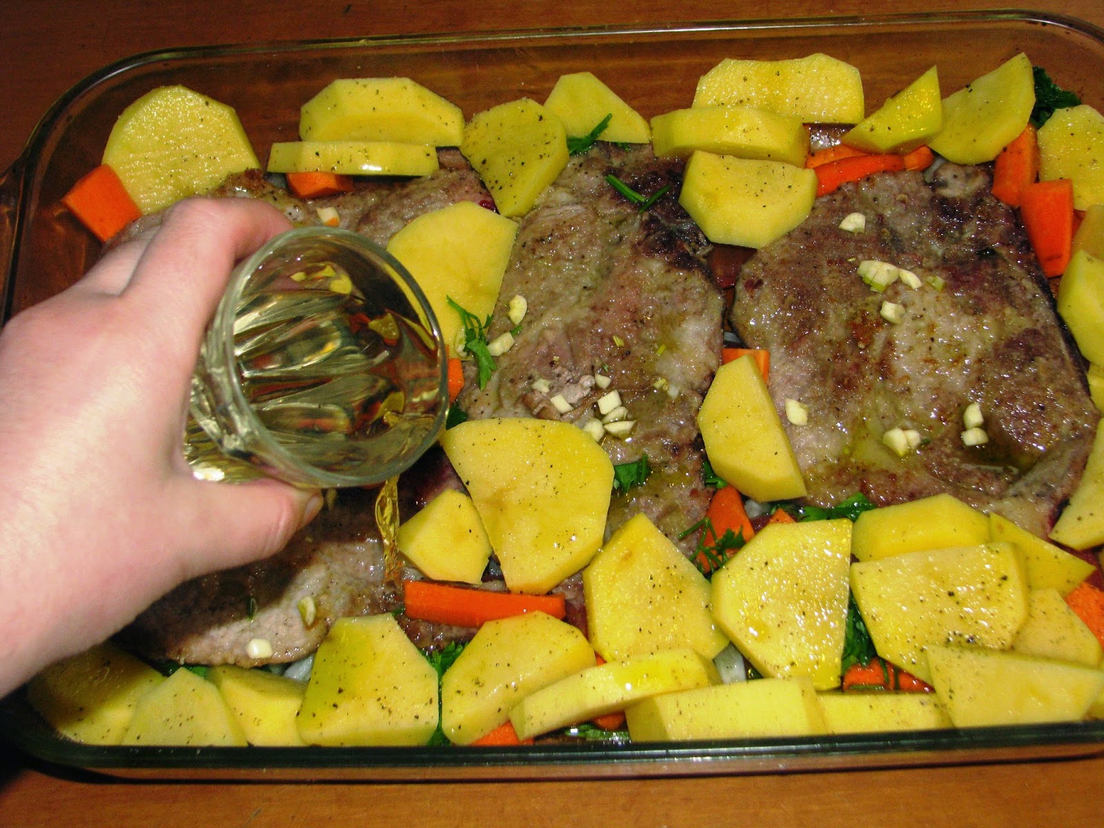 Χοιρινές μπριζόλες με λαχανικά και πατάτες στο φούρνο