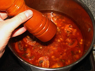 Ρίχνουμε νερό, αλάτι και πιπέρι.